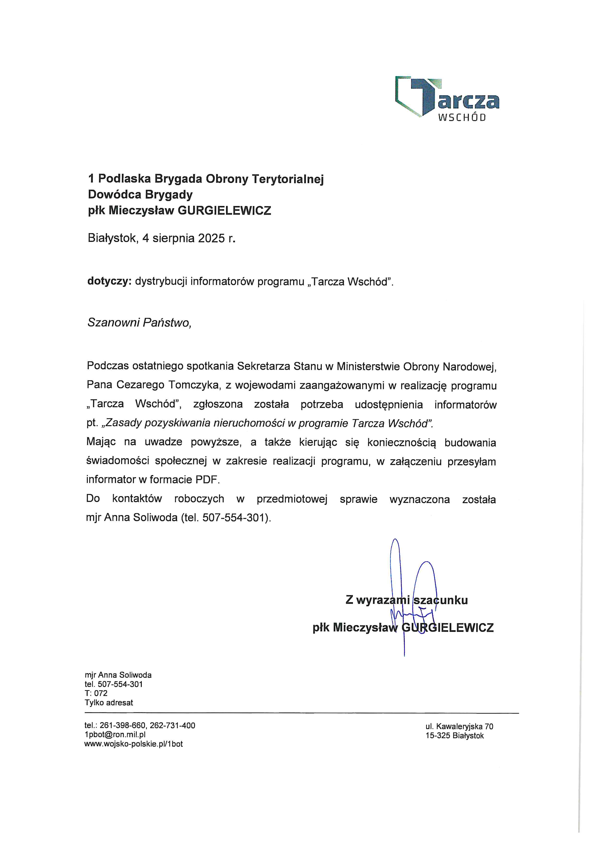 Informator programu "Tarcza Wschód" 06-08-2025Data publikacji, 06-08-2025, Administrator Autor, Administrator , 93Ilość wyświetleń, 93 Archiwum