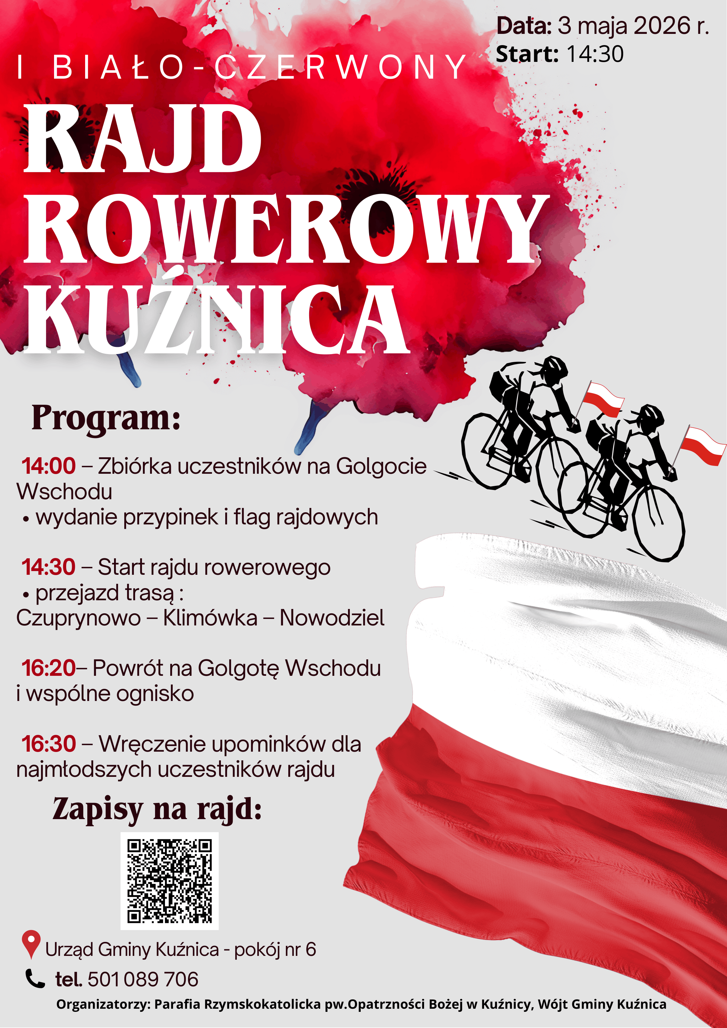 Serdecznie zapraszamy wszystkich mieszkańców oraz gości do udziału w rajdzie rowerowym organizowanym z okazji Święta Konstytucji 3 Maja.