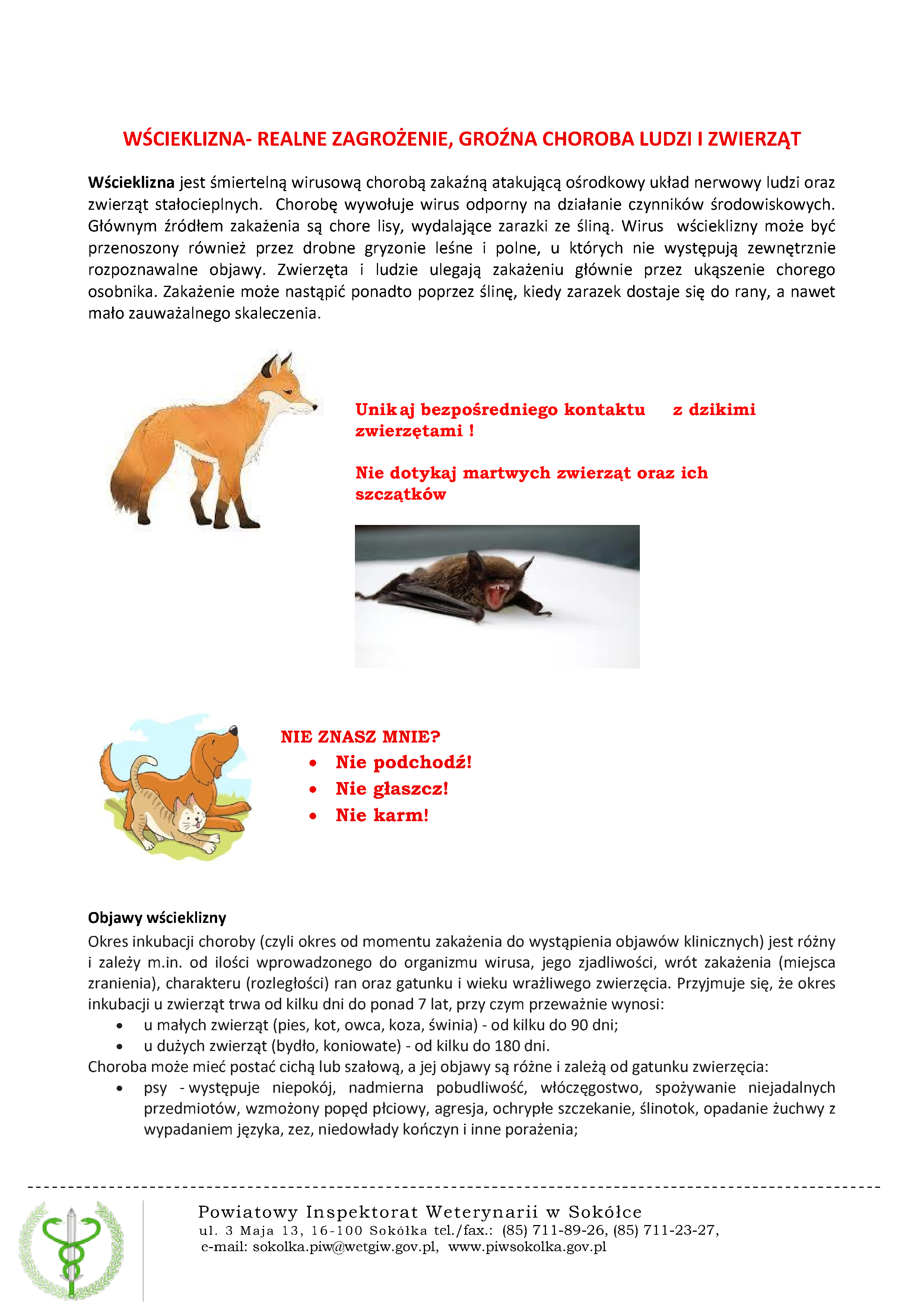 Informacja w związku z potwierdzeniem ogniska wścieklizny w województwie lubelskim.